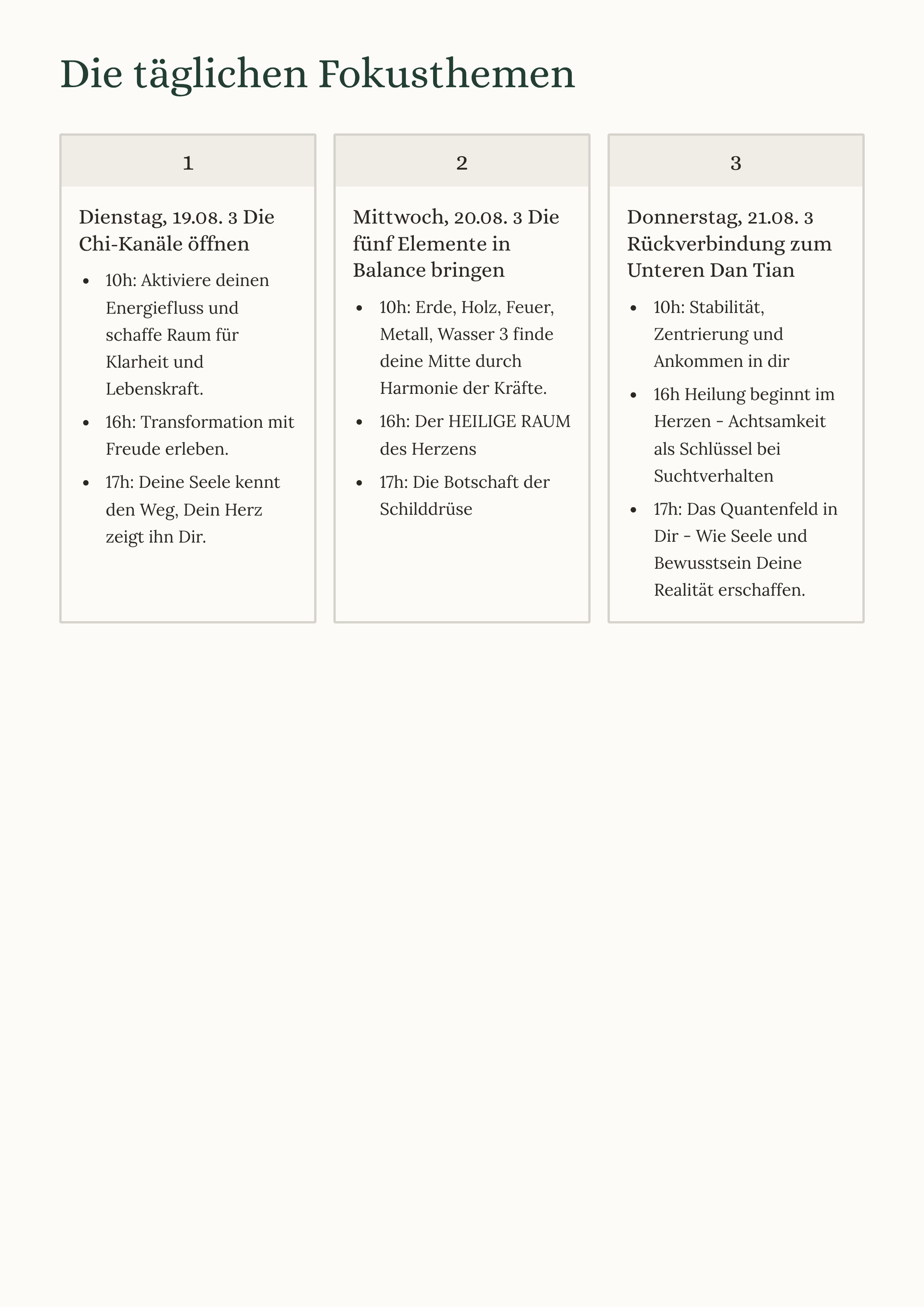 Fokusthemen von Dienstag bis Donnerstag